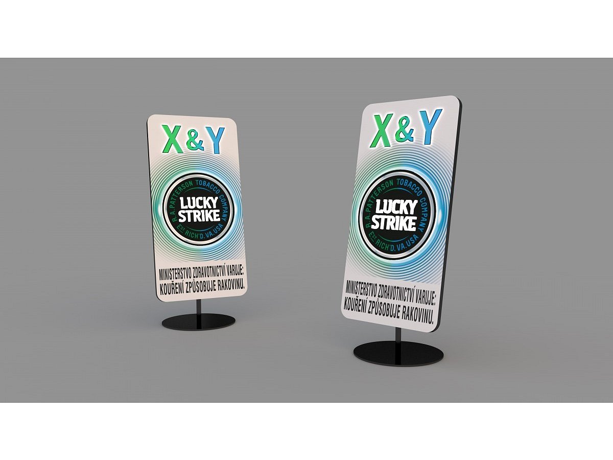 Navrhli jsme designový koncept remodelingu trafiky v obchodním centru Nový Smíchov. Koncept zahrnuje design bezpečnostních rámů včetně světelného brandu, zabudované LED světlo (v barvách společnosti Lucky Strike) v obrandovaném prodejním pultu. Součástí je také návrh veškerých in-store prvků celé trafiky.