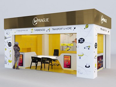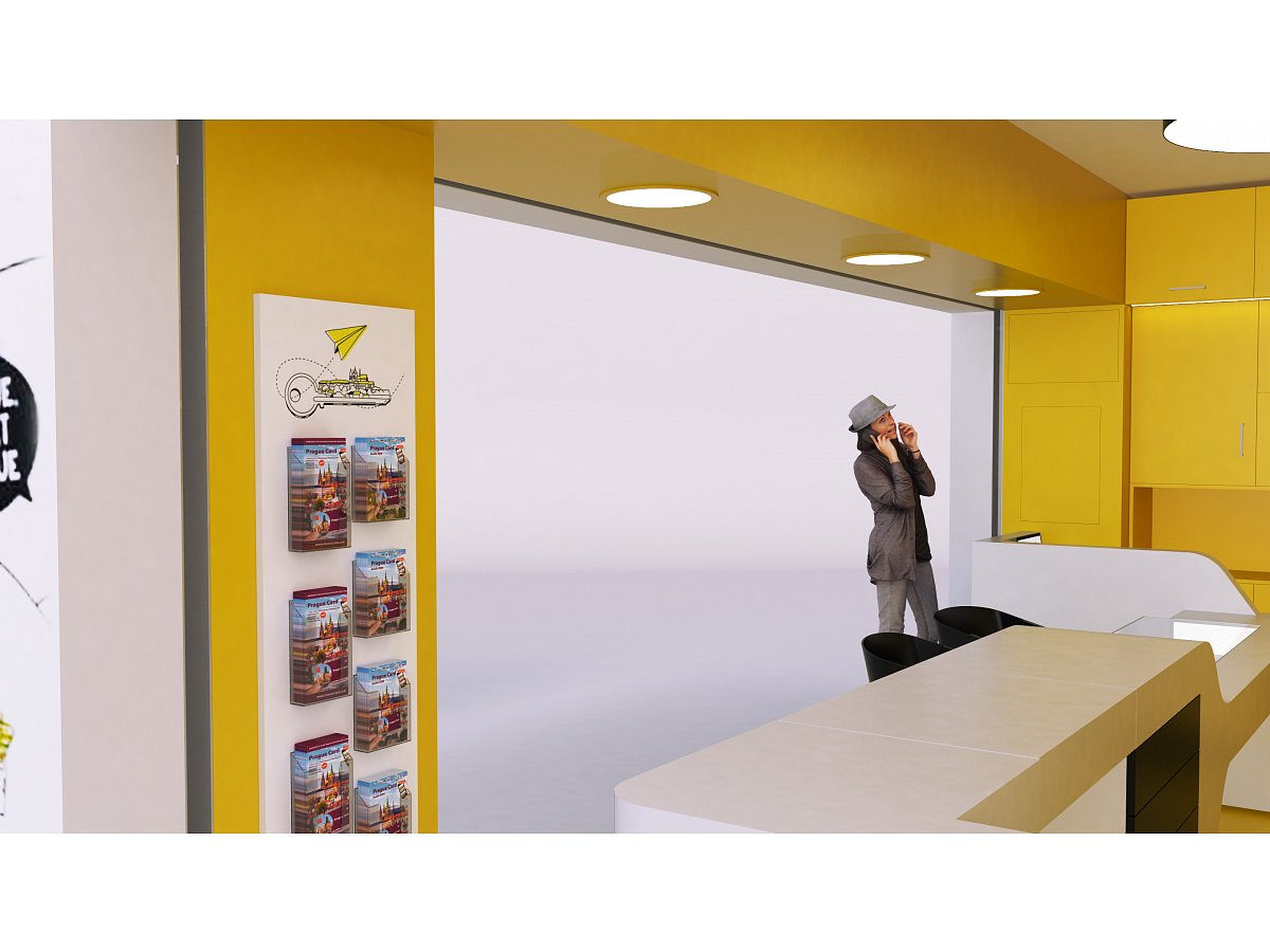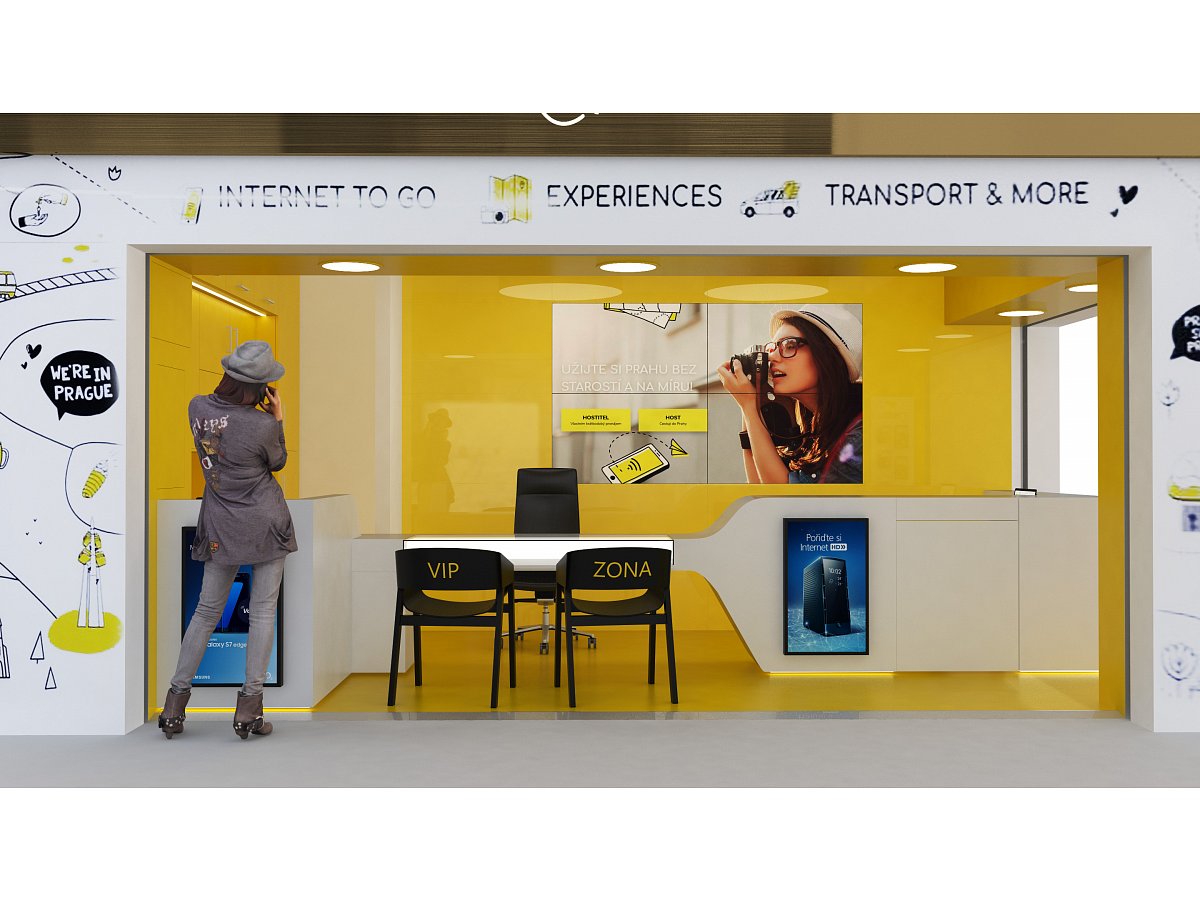 Návrh elegantního a moderního remodelingu kiosku, který byl umístěný na Letišti Václava Havla Praha.