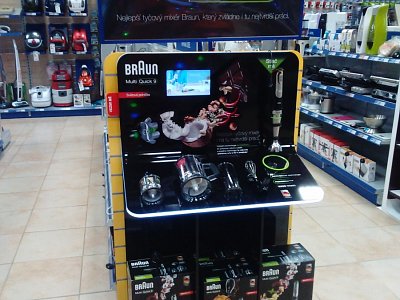 Zákazník i bez přímého kontaktu s vystaveným mixérem si může celý model prohlédnout, díky spodnímu zrcadlu na stojanu.
