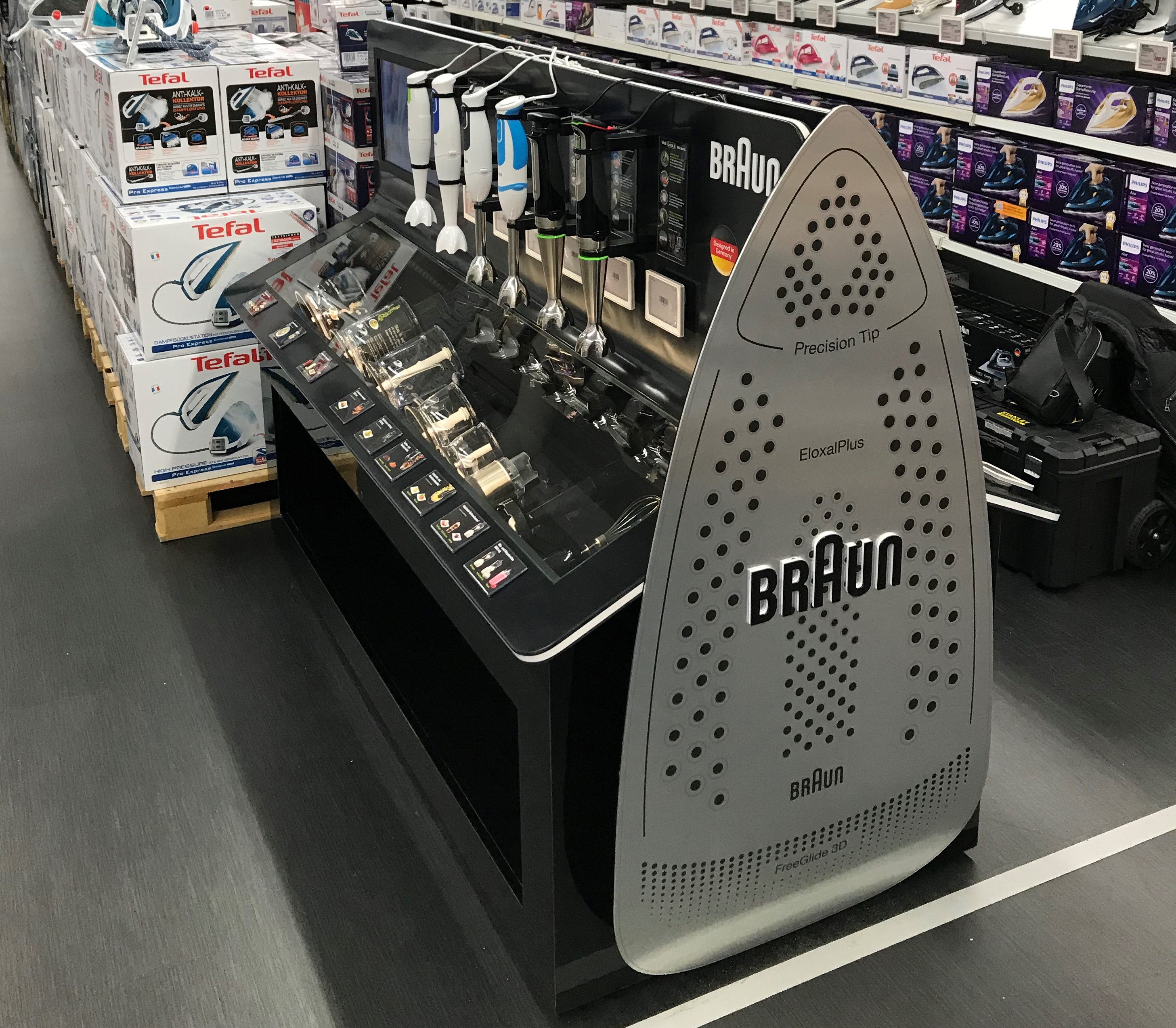 Stůl je navržen a vyroben z umělého kamene a slouží na prezentaci a prodej produktů značky BRAUN. Zákazník si může každý produkt osahat a zjistit o něm veškeré informace, které získá nejen z popisků, ale také z informačních videí promítaných na integrovaných obrazovkách.