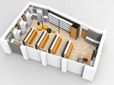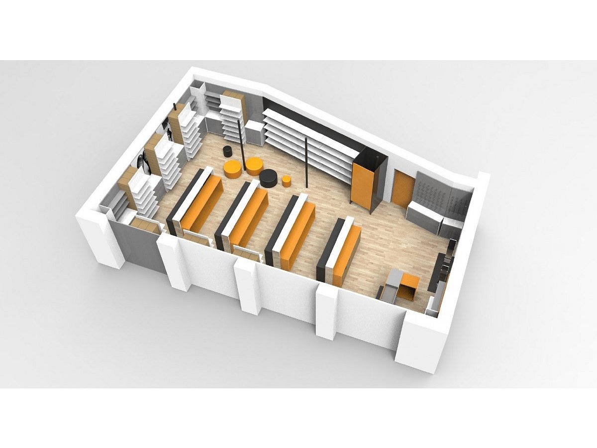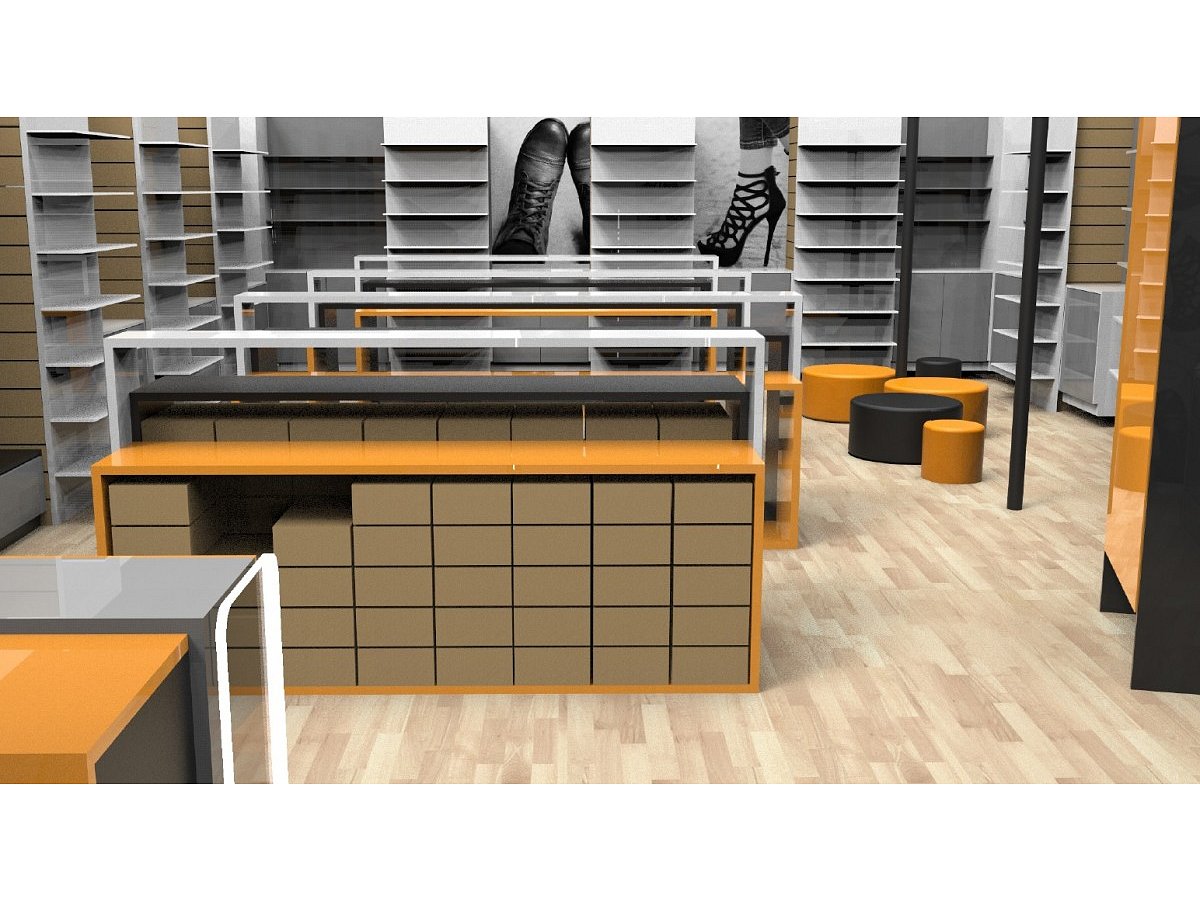 Zadání od klienta bylo navrhnout a vyrobit design prodejny s obuví pro prodejnu COOP – od nábytku, osvětlení, podlah až po zabezpečovací zařízení. Zkrátka kompletní rebranding prodejny. Na tomto projektu jsme se vyřádili a opravdu nás bavil. Dalším požadavek byl, aby realizace byla souběžná s realizací prodejny potravin.