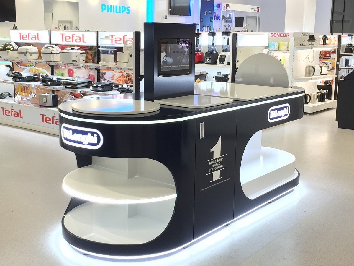 Playtable vyniká svými oblými tvary a LED podsvícení. Lze prezentovat až 7 kávovarů. Prostor pro 3 - 4 kávovary k zakoupení. Celý playtable má podsvícené police, kde si zákazník může vybrat z druhů kávy a příslušenství, jako třeba hrnečky na kávu.