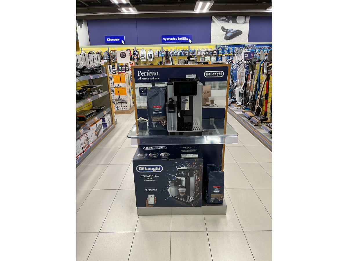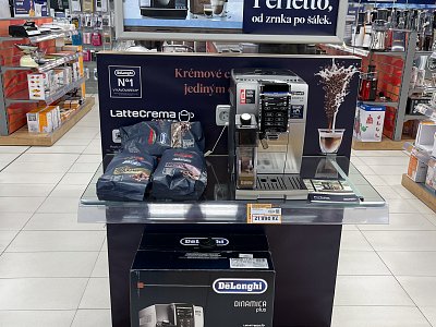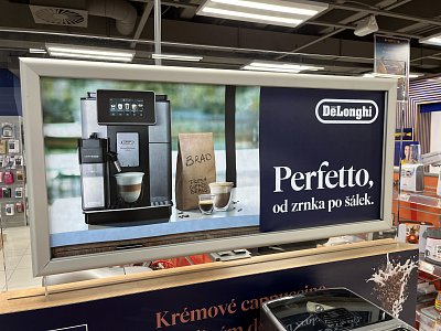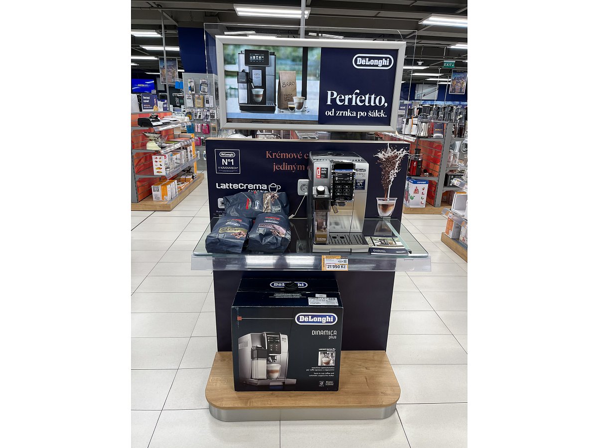 Pro značku DeLonghi jsme v rekordním čase rebrandovali čela regálů na prodejnách Datart.
