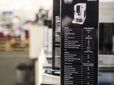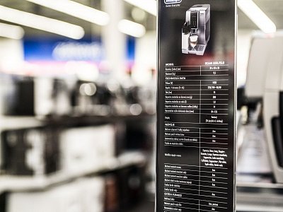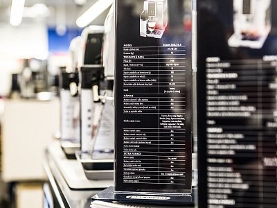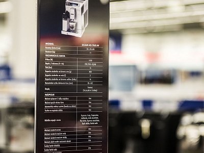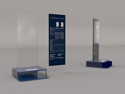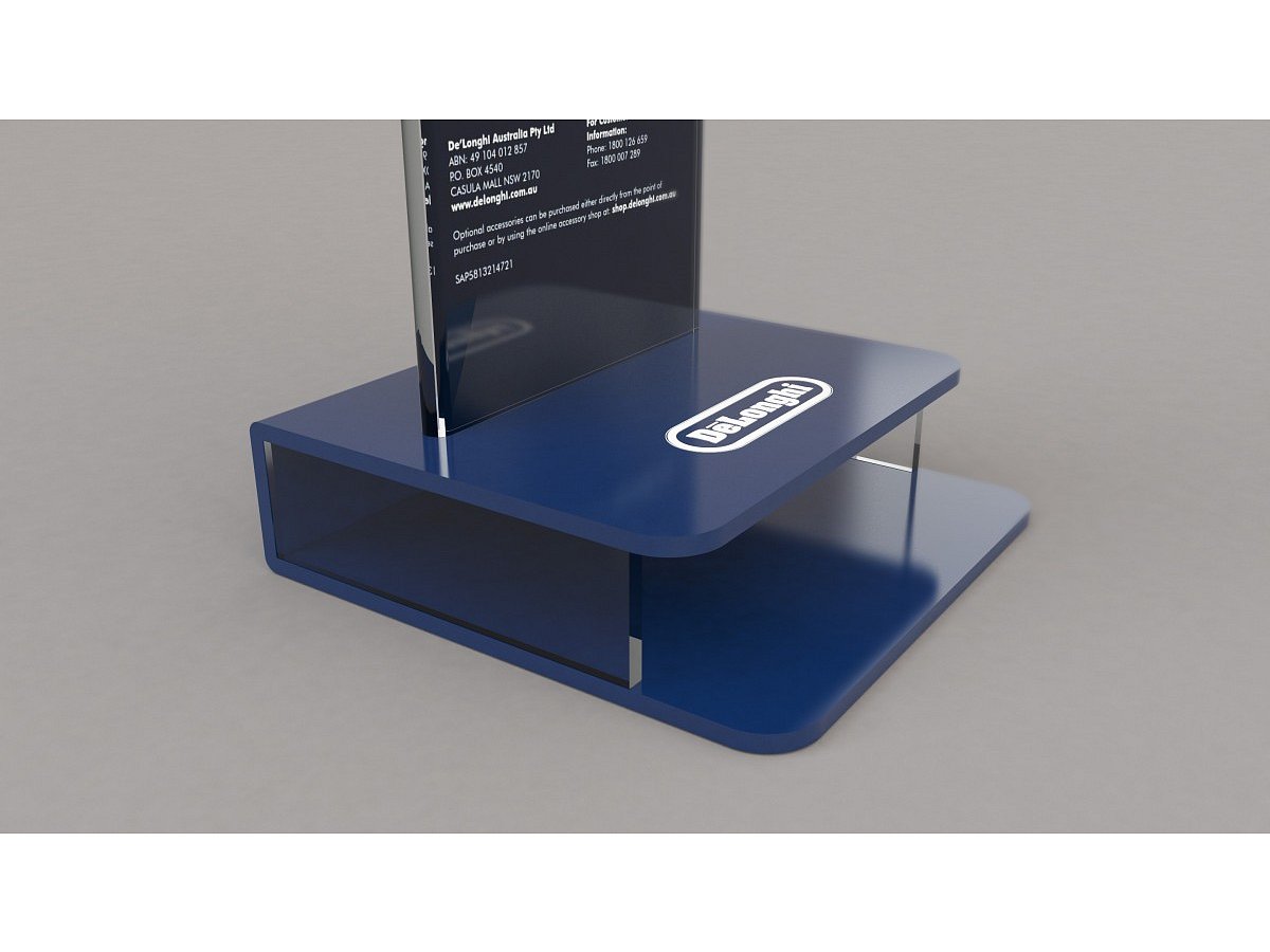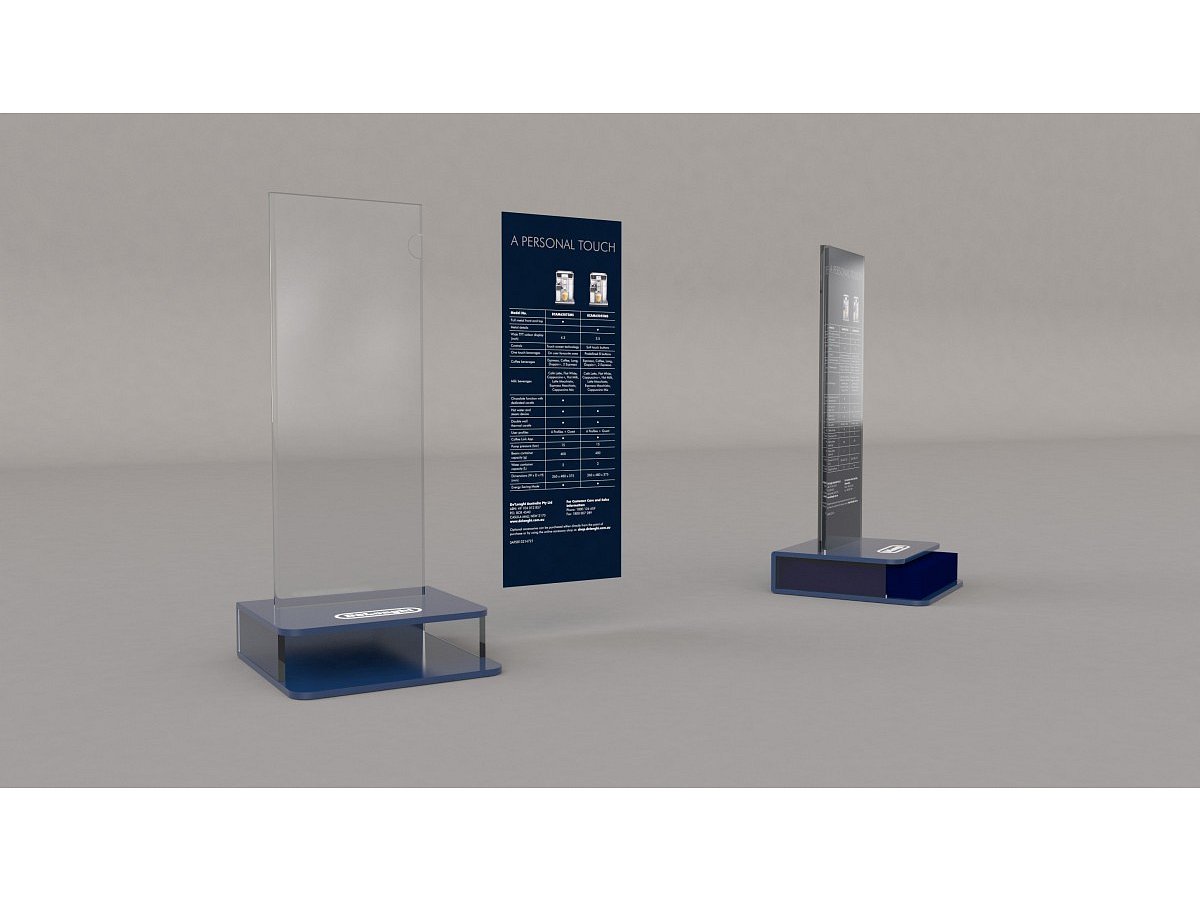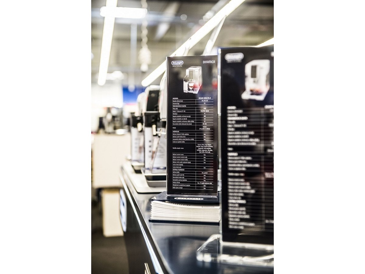 Stojánky na popis výrobků jsou vyrobeny z čirého plastu a lze u nich měnit obsah dle potřeb klienta. Zhotovení je ve dvou verzích – bez podesty a s podestou pro možnost vložení informačních brožur.