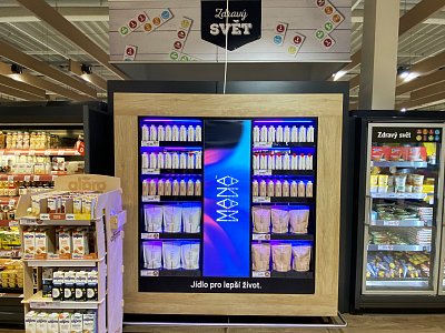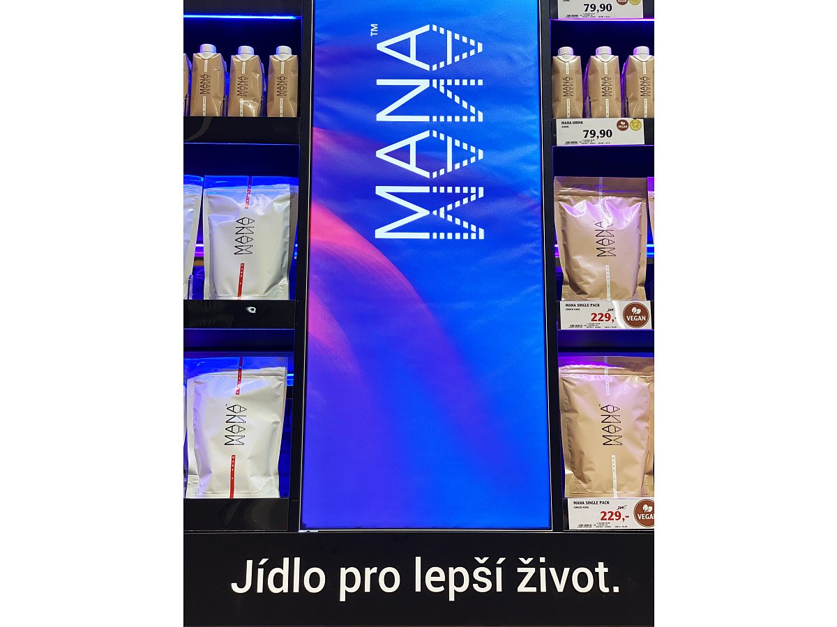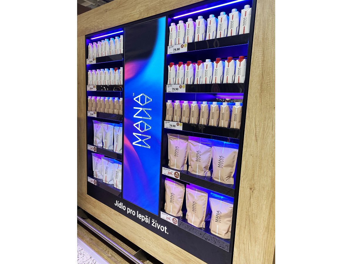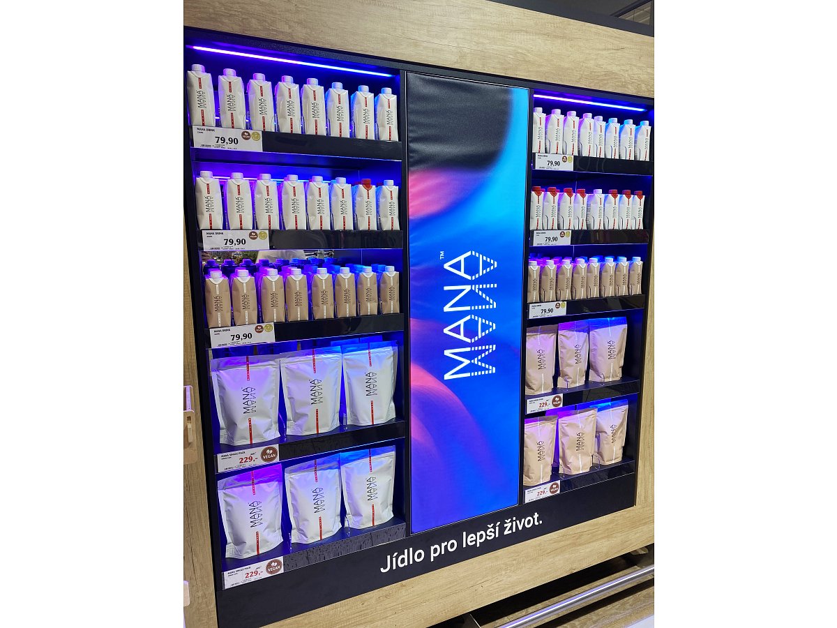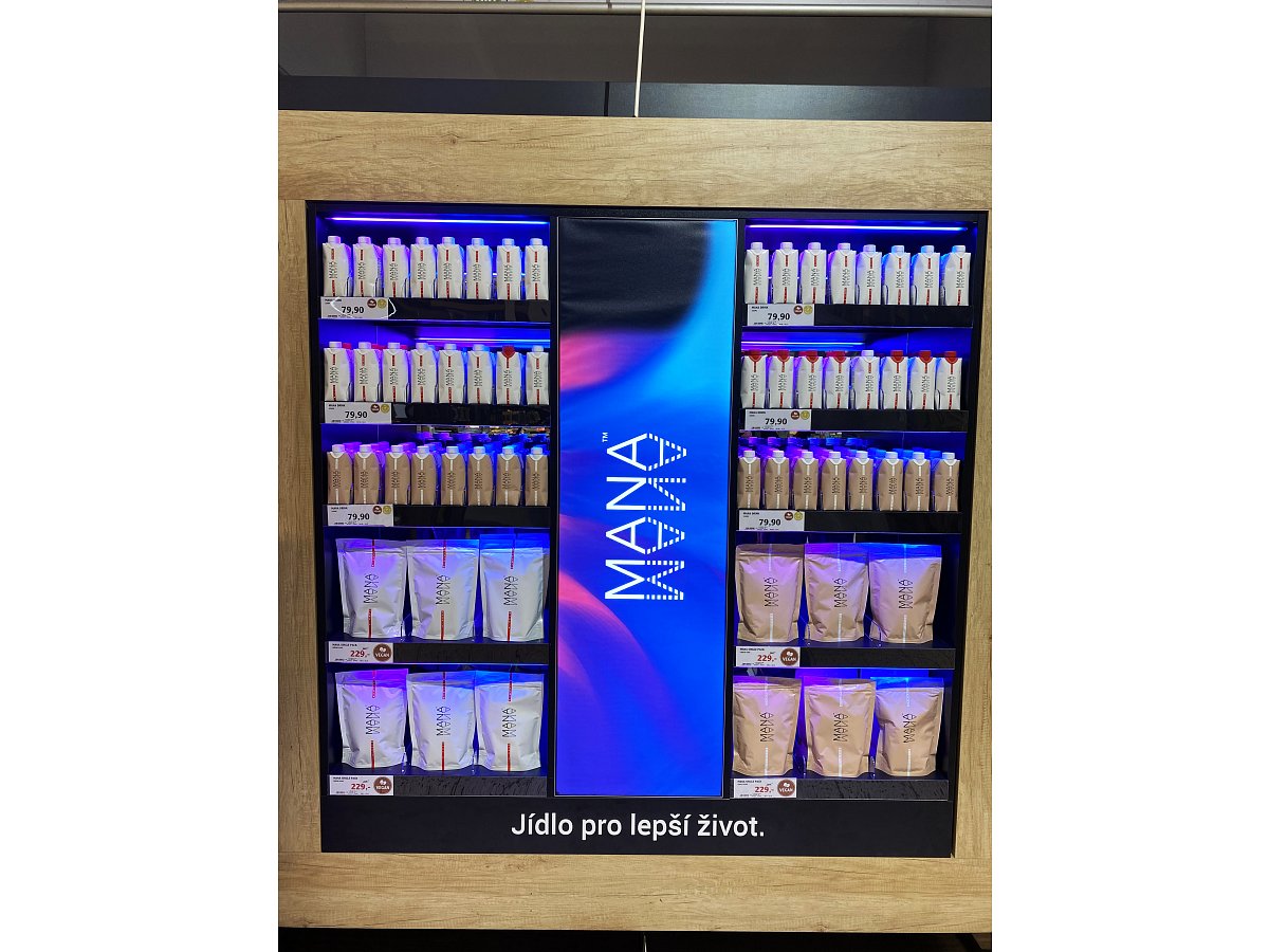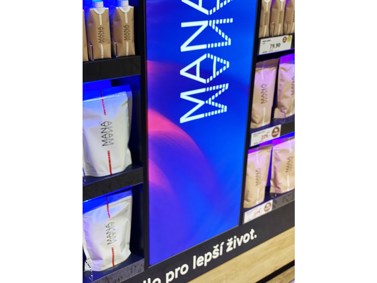 Společnost Heaven Labs nás oslovila s požadavkem zaujmout zákazníka v sekci zdravá výživa. Za použití nejmodernějších materiálů se návrh stal realitou. Výsledkem je zviditelnění produktů MANA za účelem navýšení prodeje. Vystavení je umístěno na prodejně Globus Centrum Černý Most.