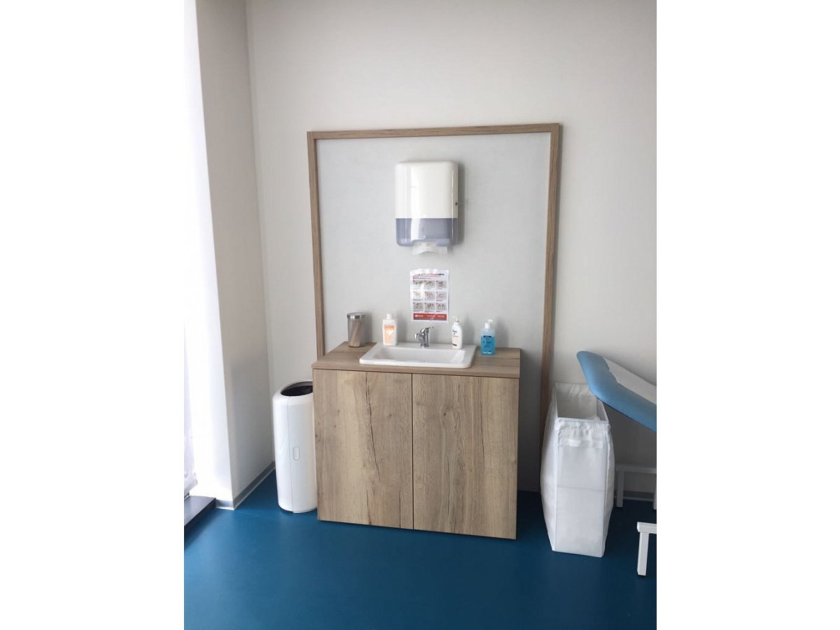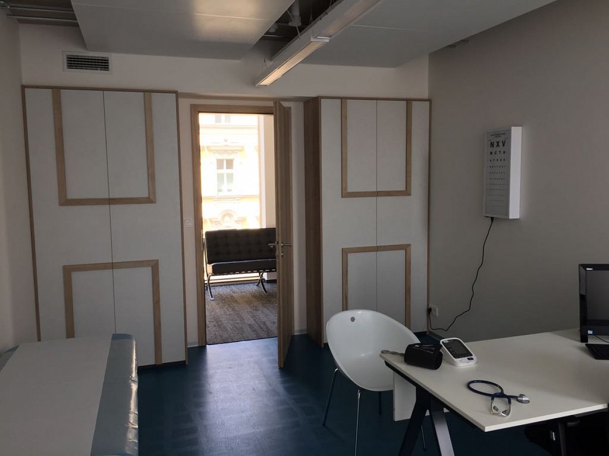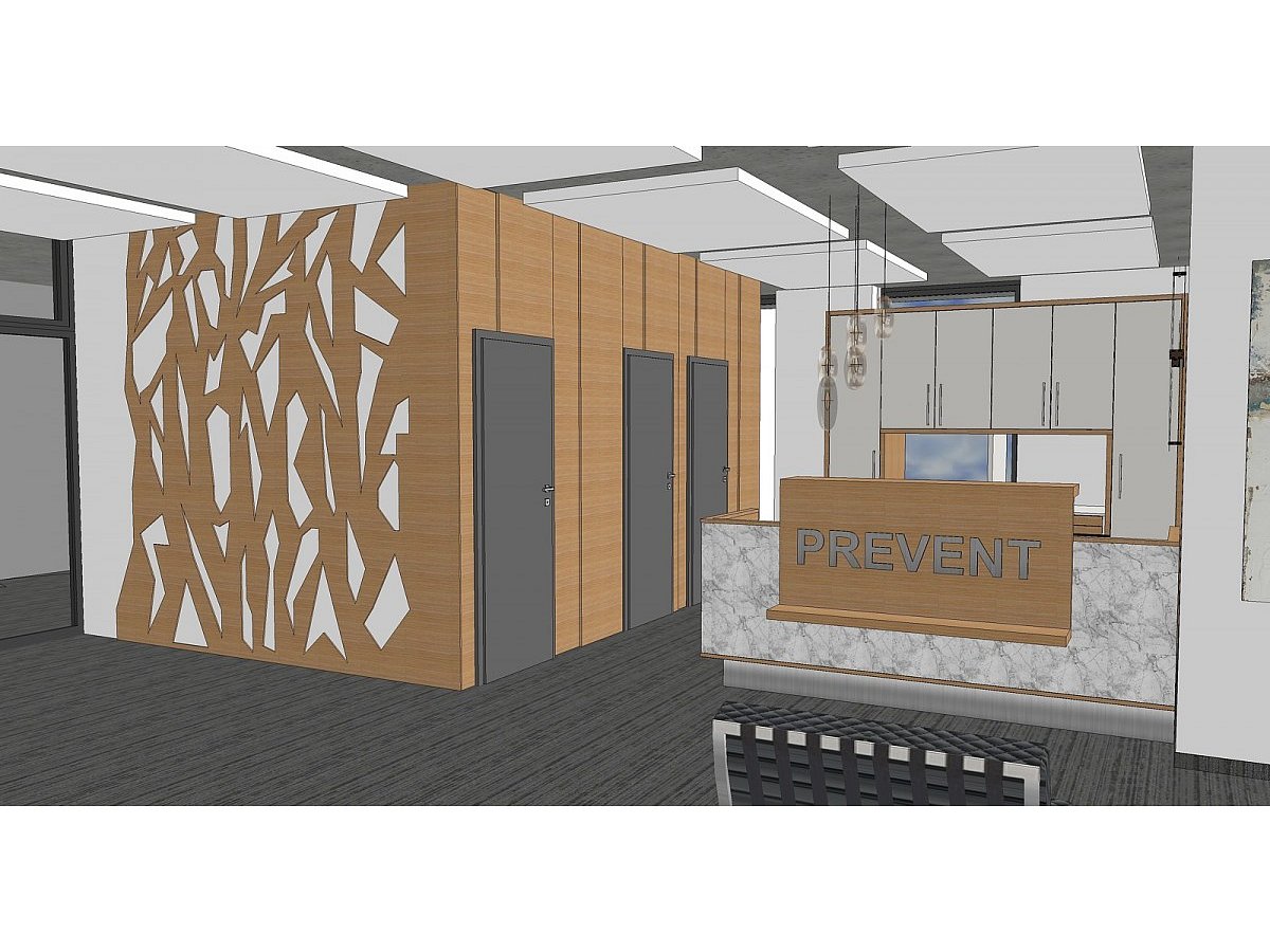 Pokud jdeme na jakoukoliv prohlídku k lékaři, zkrátka se chceme cítit dobře a nebýt vůbec ve stresu. A to my přesně víme a v podobné duchu jsme i vybavili interiérovými prvky ordinaci PREVENT. Nesmělo chybět ani zařízení kuchyňky bez spotřebičů a jednotlivé skříňkové segmenty do celé ordinace.