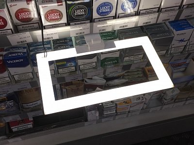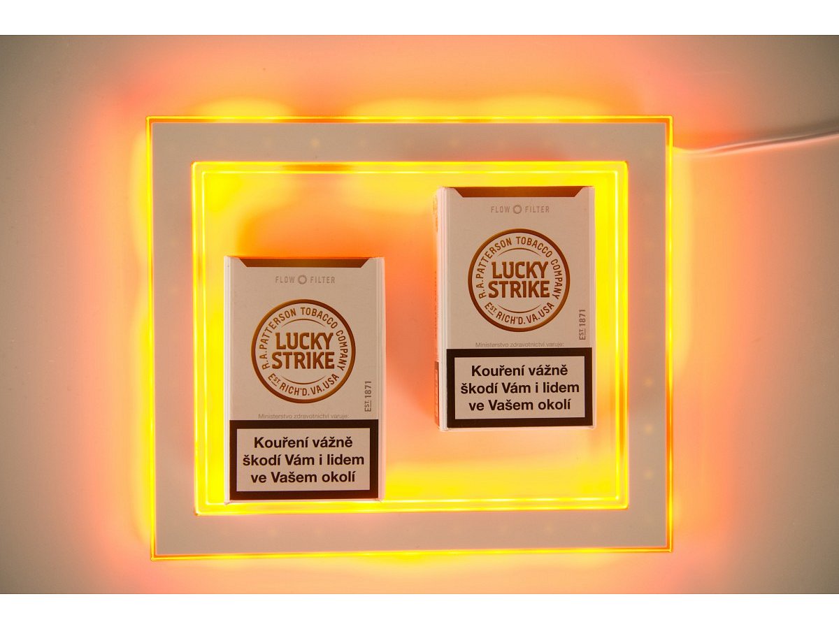 Rámeček pro společnost BAT, který je světelně podsvícený a tím zvýrazňuje produkty od společnosti. Světlo se automaticky rozsvítí při jakémkoliv kontaktu.