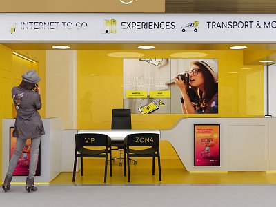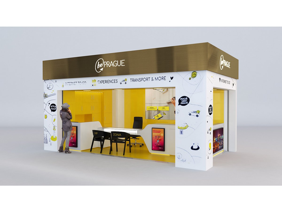 Návrh elegantního a moderního remodelingu kiosku, který byl umístěný na Letišti Václava Havla Praha.