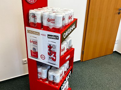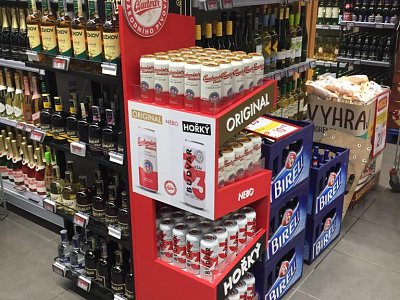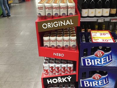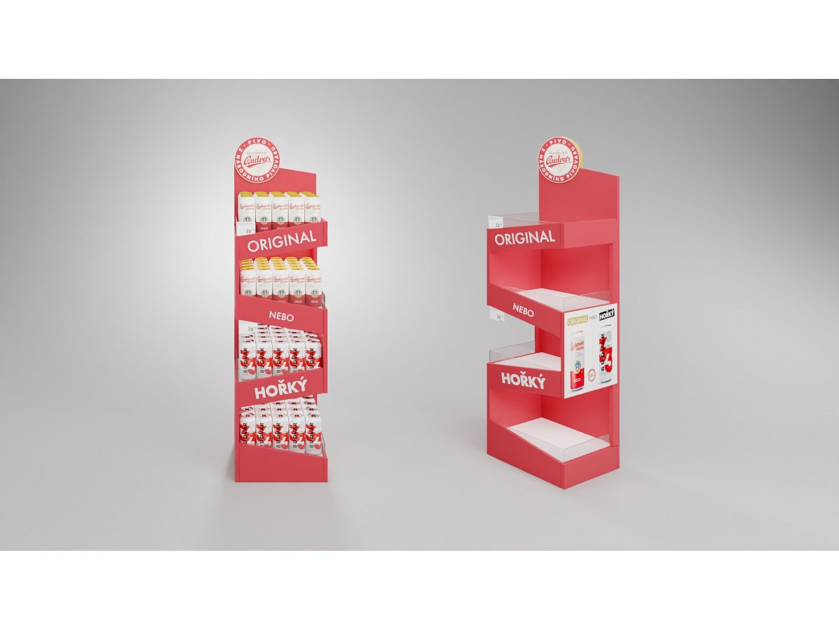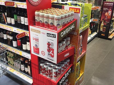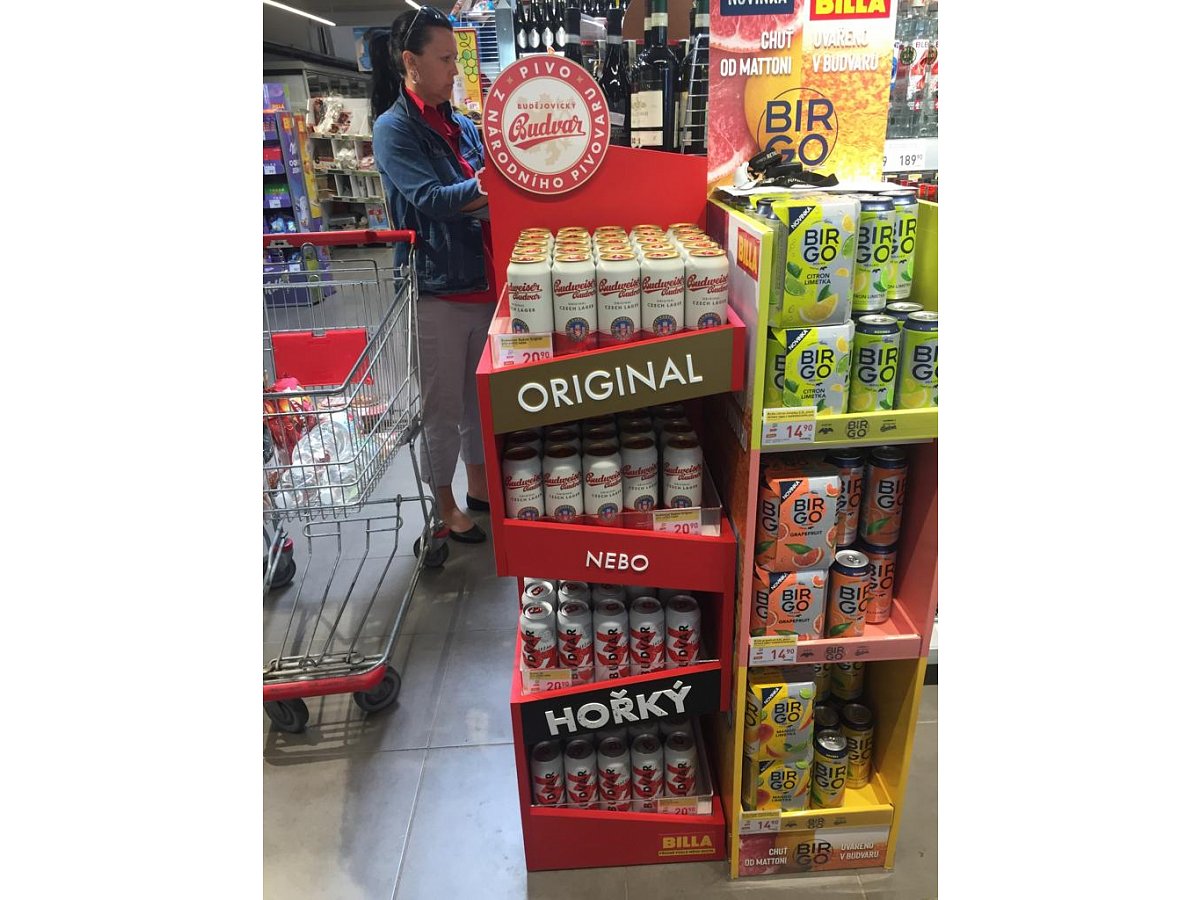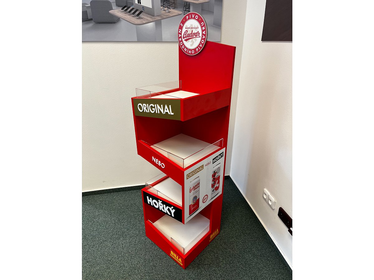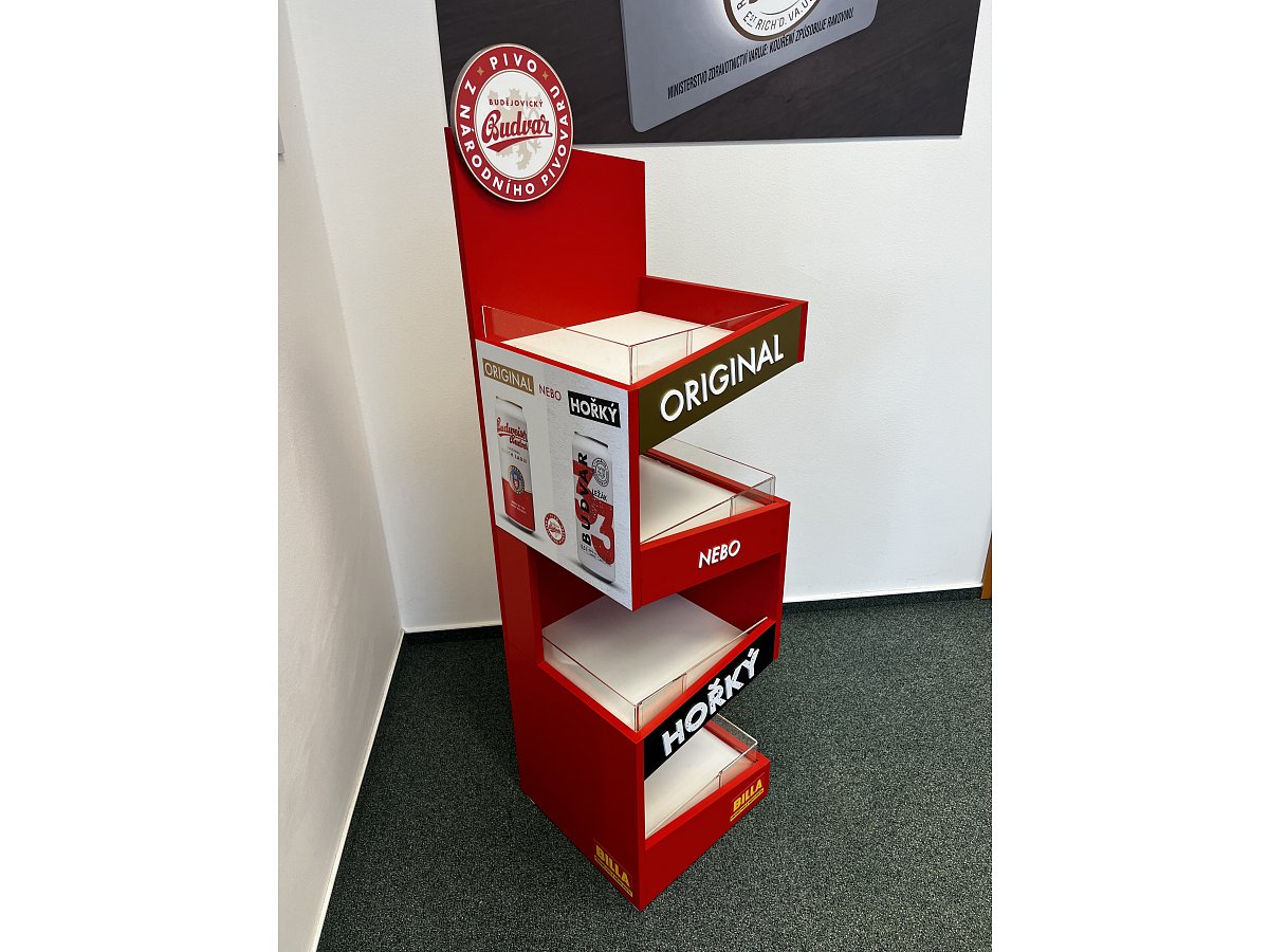 Pro značku Budějovický Budvar jsme vytvořili prodejní stojan, který byl umístěný v nápojové sekci v prodejnách Billa.