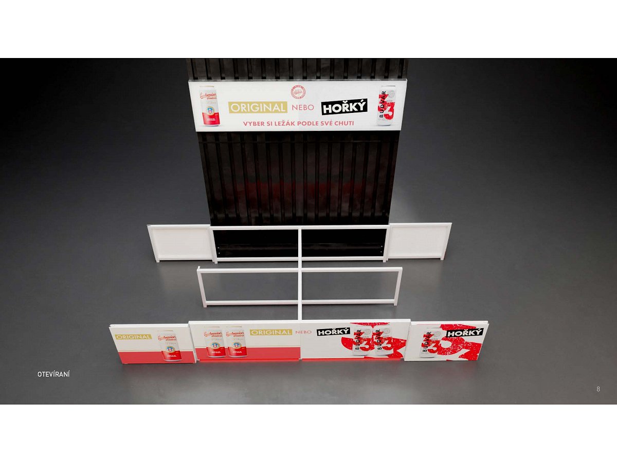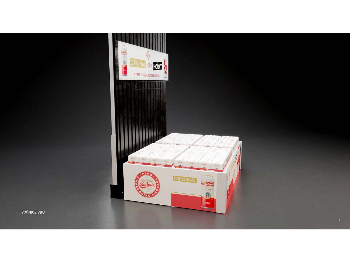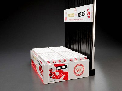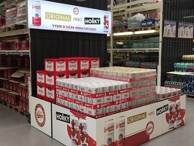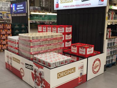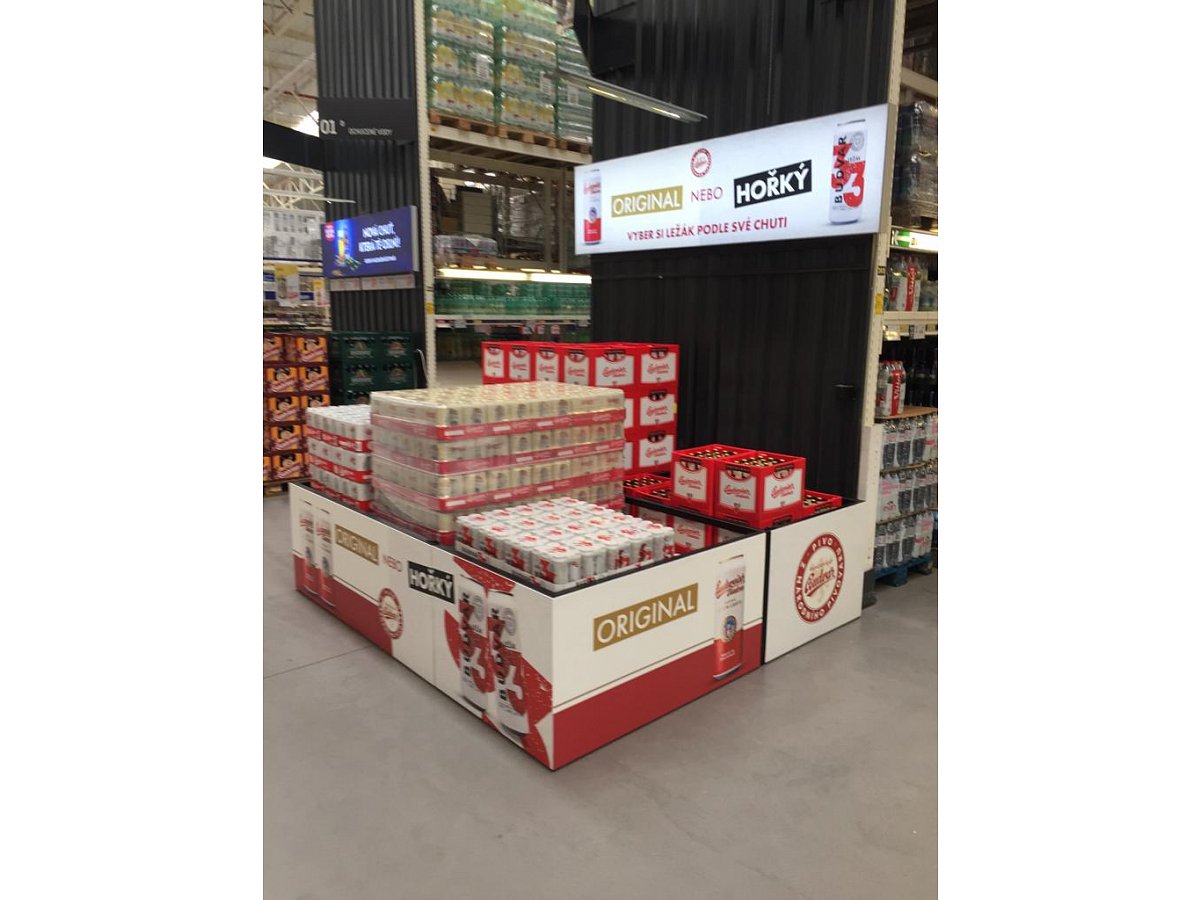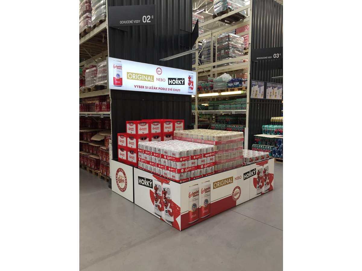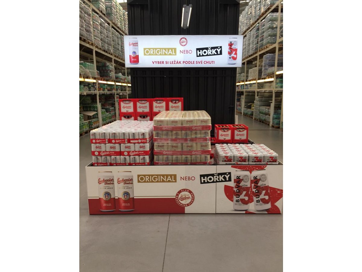 Pro značku Budějovický Budvar jsme vytvořili stojan, který byl umístěný ve velkoobchodních prodejnách Makro.