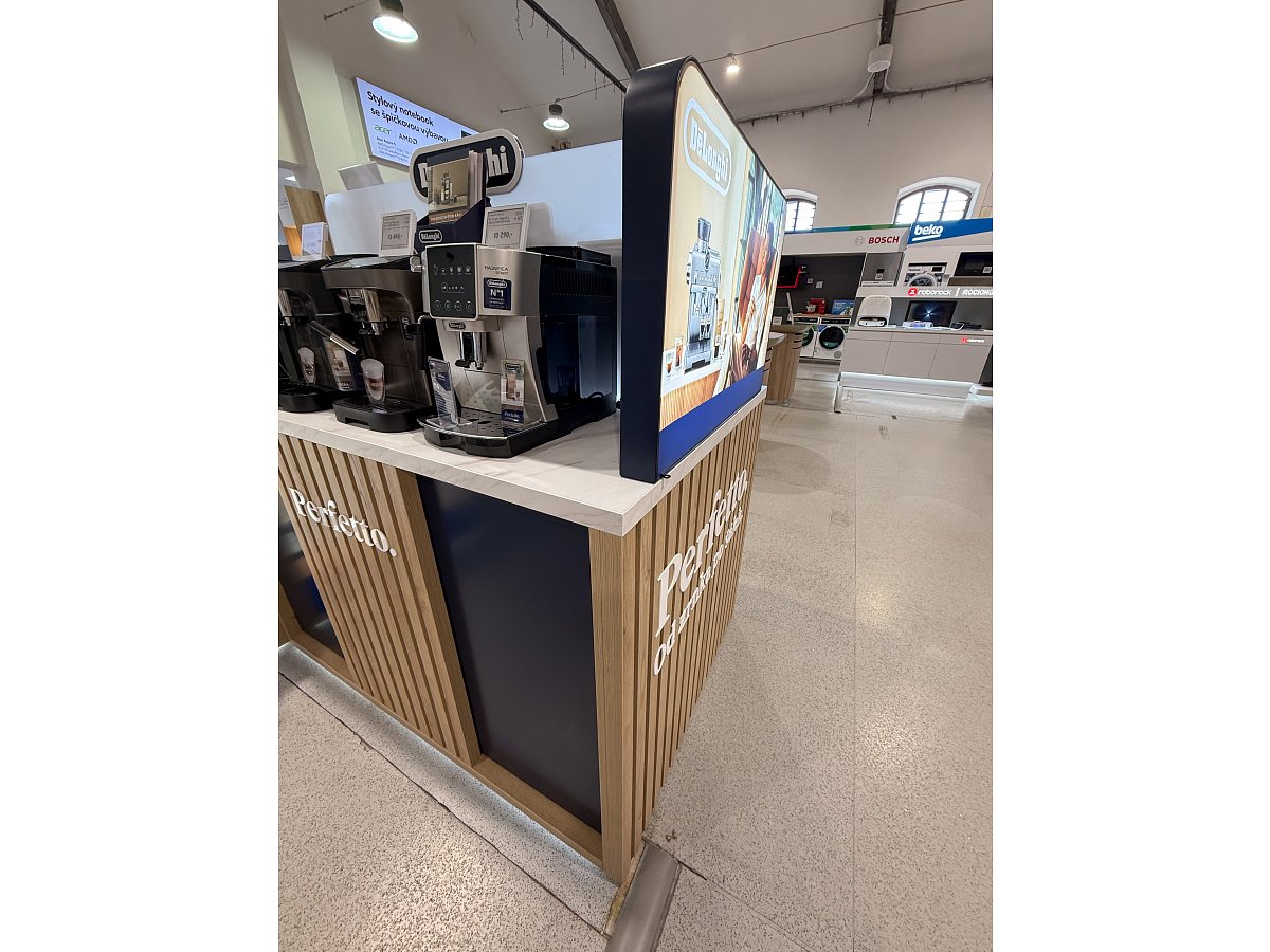 Tato kombinace netradičního tvaru, promyšleného designu a kvalitních materiálů posouvá vystavení produktů značky De'Longhi na naprosto novou úroveň prémiové prezentace.