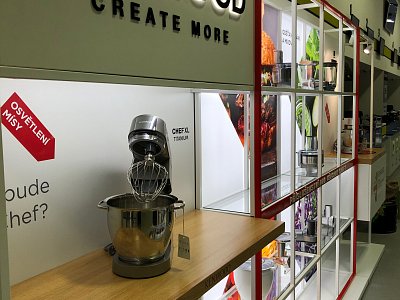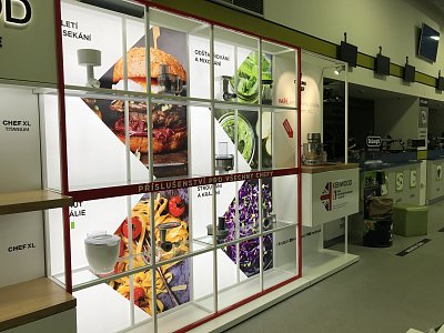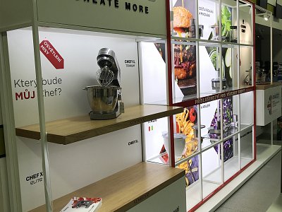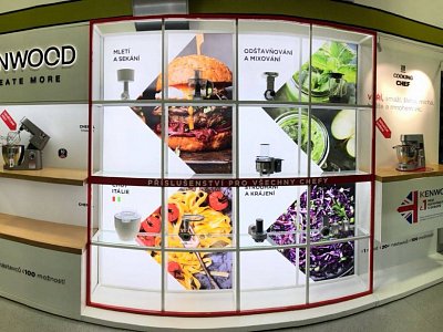 Cílem bylo vytvořit nadčasovou, vzdušnou a prostorově dominantní prezentaci. Jsou zde vystaveny tři prémiové roboty značky Kenwood včetně základního příslušenství, které je dodáváno k robotům a zákazník si ho může přímo osahat. Vše podtrhává zadní LED prezentace TOP funkcí vystavovaných produktů a imitace kuchyňské plotýnky, na které je jeden z robotů posazen. Nechybí ani 3D brand společnosti včetně vyrytého názvu do dřevěných polic a světla, která ještě více upozorňují na vystavené produkty.