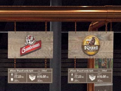 Ulička sudových piv začíná sekcí výčepní techniky, kde velkou grafikou prezentujeme možnost vypůjčení na malé ale i velké pá rty. Následně pokračují sudová piva, která jsou dělena podle značek a jednoduše rozeznatelné podle barevného víčka, které je přiřazeno k dané cenovce piva. Hlavní měděné potrubí je upevněné na lankách ke střeše haly velkoskladu. Z měděné imitace potrubí visí cedule se značkou a cenovkou k danému pivu. Ty jsou jednoduše vyměnitelné.