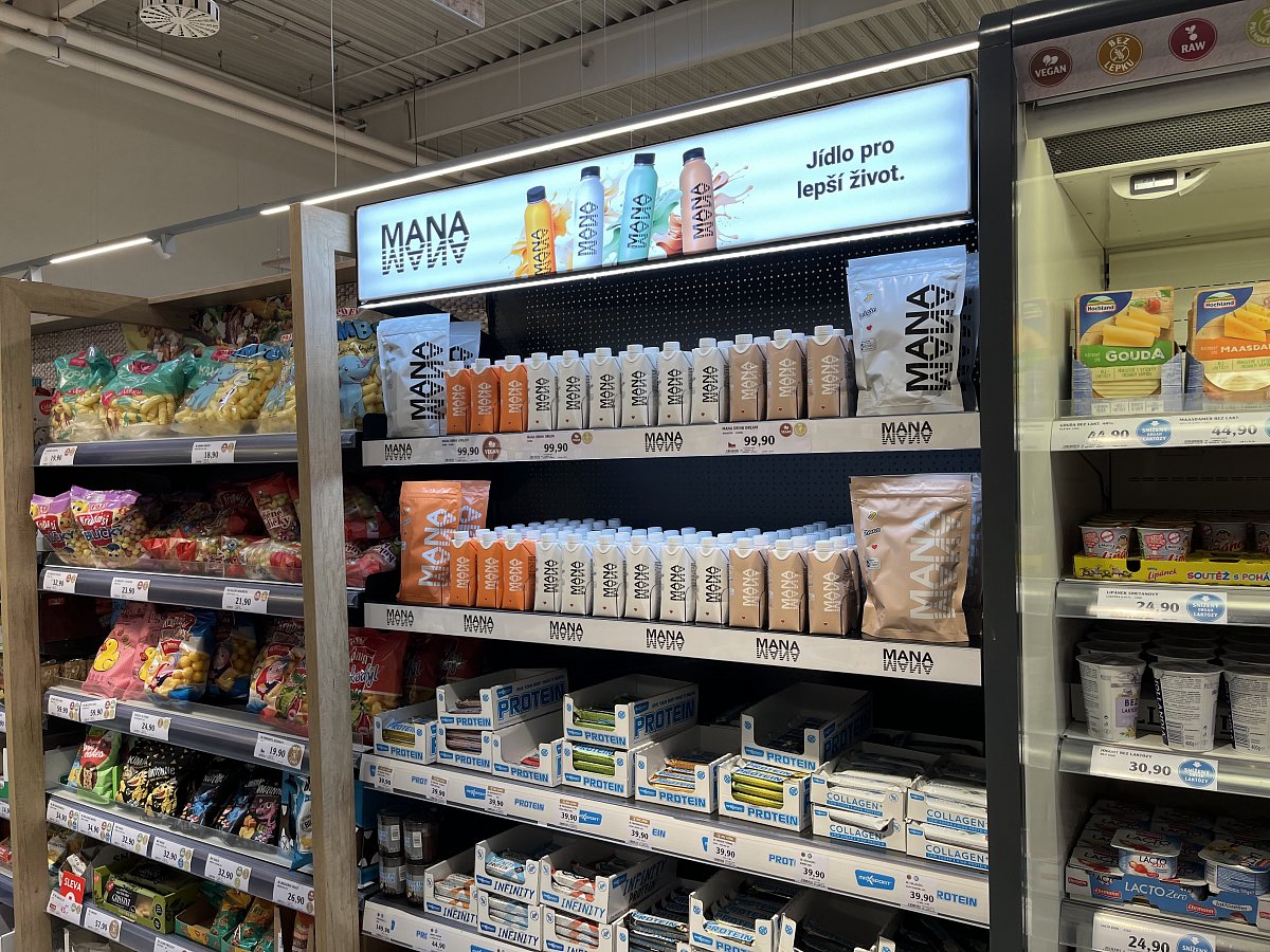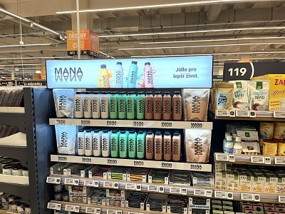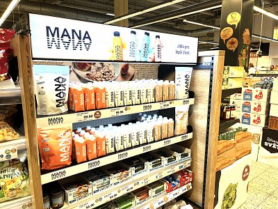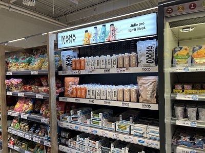 Pro našeho klienta značku MANA jsme navrhli a vyrobili několik variant policového vystavení potravinových produktů v sekci Zdravá výživa.