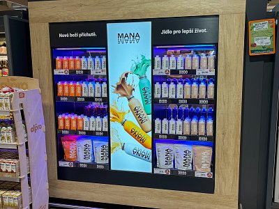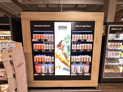 Pro našeho klienta, výrobce tekutých jídel MANA, jsme navrhli a vyrobili sortimentní okno určené k upoutání pozornosti zákazníků v prodejnách Globus.