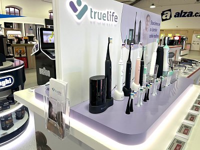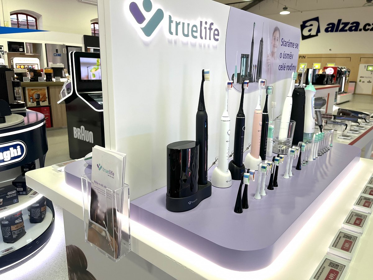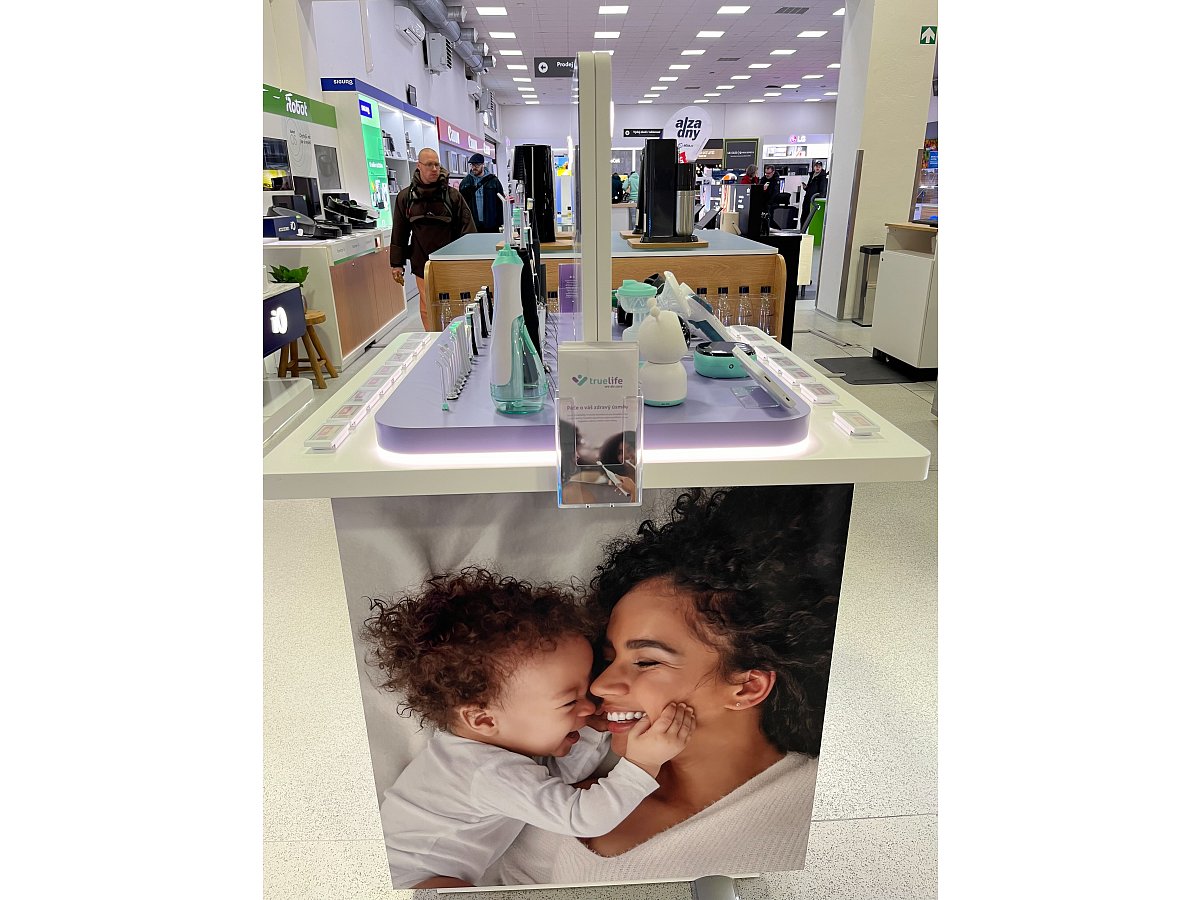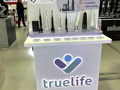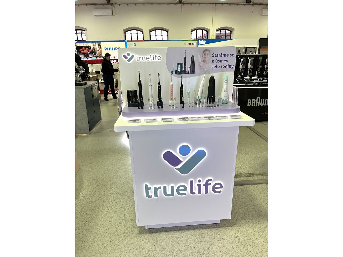 Pro značku sonických zubních kartáčků Truelife jsme navrhli a vyrobili stůl určený k vystavení produktů v prodejně Alza.